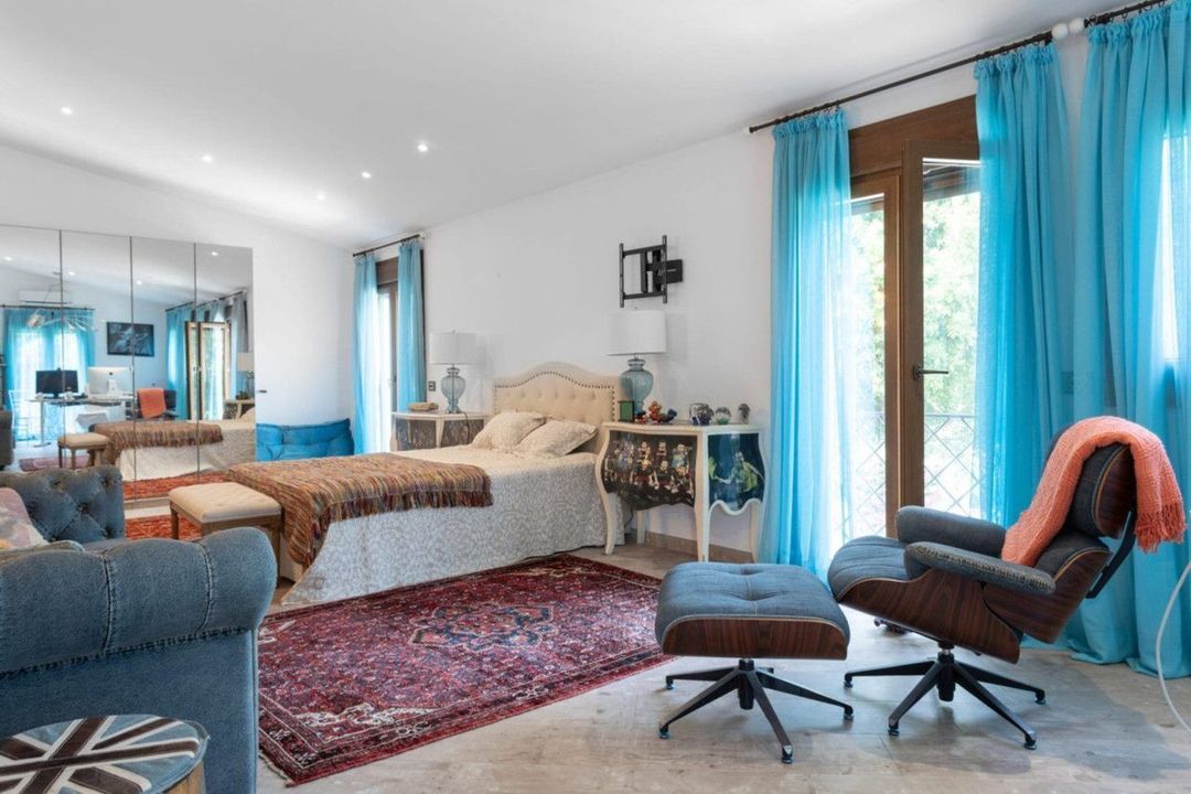 Extraordinary villa with a unique location on the golf course in Guadalmina Baja, just 200 meters from the sea! This fantastic property boasts four bedrooms, each with its own en-suite bathroom. The master bedroom stands out with its spacious layout, featuring a cozy fireplace, walk-in closet, and a sizable terrace overlooking the meticulously maintained garden. Enjoy breathtaking views of the golf course and garden from the large windows and French balconies in every bedroom.