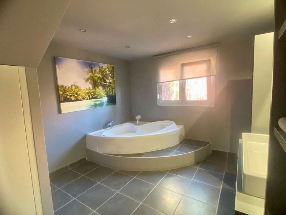 • A dream bathroom: spacious and bright, featuring a corner bathtub perfect for relaxation and a separate shower for everyday convenience.