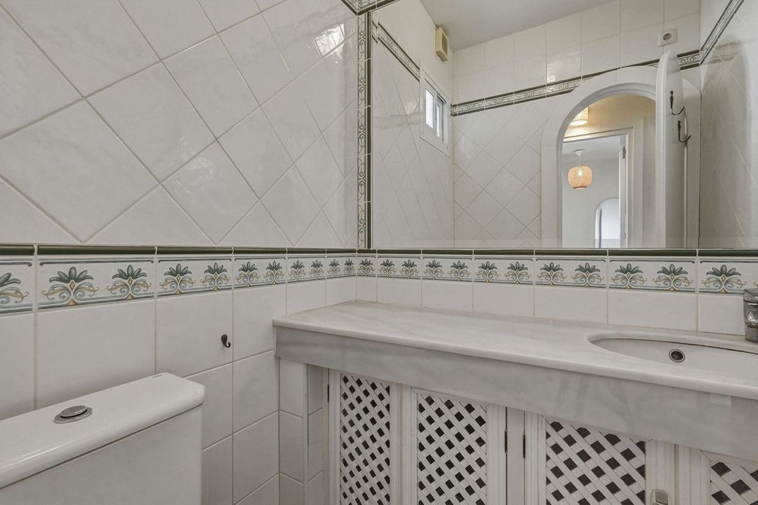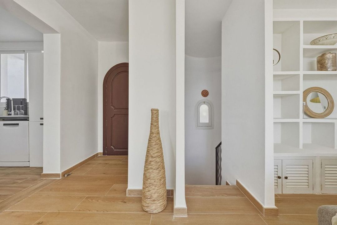 The ground floor comprises three well-sized bedrooms, two of which have direct access to the terrace and private garden—an especially attractive feature for guests. The communal swimming pool is just a few steps from the property, enhancing its appeal with a resort-style lifestyle.