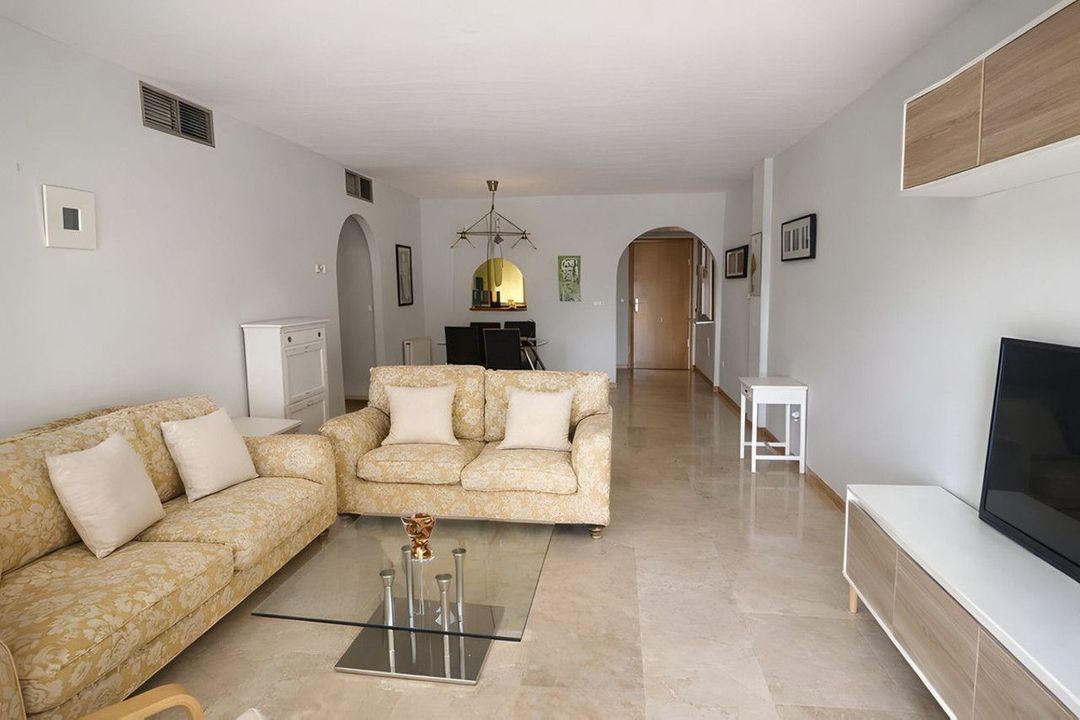 Located in a prestigious private development in Guadalmina, this frontline golf apartment offers a peaceful setting surrounded by greenery. It is ideal as a permanent home, holiday residence, or investment on the Costa del Sol.