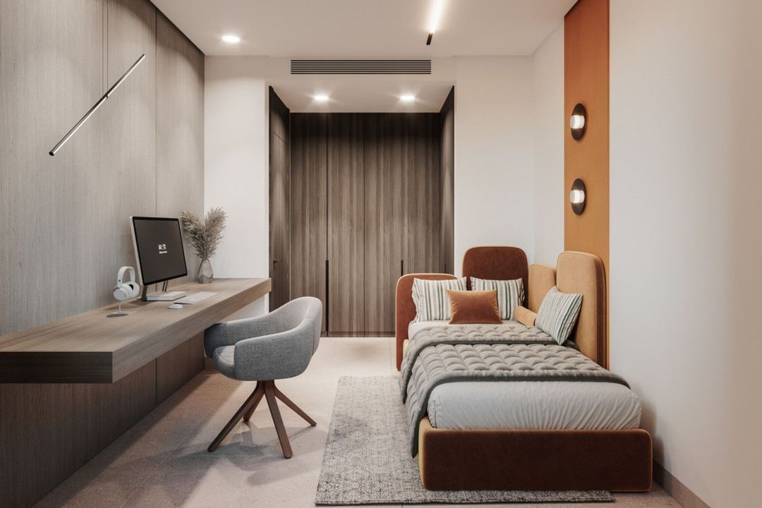 De interieurs zijn ontworpen met oog voor comfort en functionaliteit. De slaapkamers zijn afgewerkt met zachte materialen en warme tinten, met als hoogtepunt de master suite met en-suite badkamer, kleedruimte en privéterras. Twee extra slaapkamers met inbouwkasten delen een moderne, neutraal afgewerkte badkamer. De leefruimtes omvatten een open keuken met Siemens-apparatuur (andere opties beschikbaar), een gastentoilet en een royale woon-eetkamer met grote ramen die direct uitkomen op het terras en de tuin.