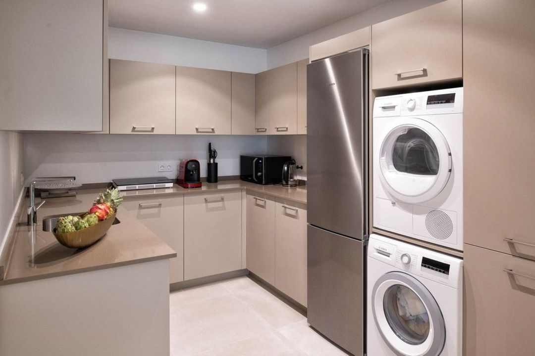 De leefruimte is open en geniet van veel natuurlijk licht. Aansluitend bevindt zich een moderne, volledig uitgeruste keuken. Vanuit de leefruimtes is er directe toegang tot de terrassen en de tuin, wat zorgt voor een vlotte verbinding tussen binnen en buiten. Er zijn tevens praktische opslagruimtes aanwezig, wat de woning geschikt maakt voor flexibel gebruik.