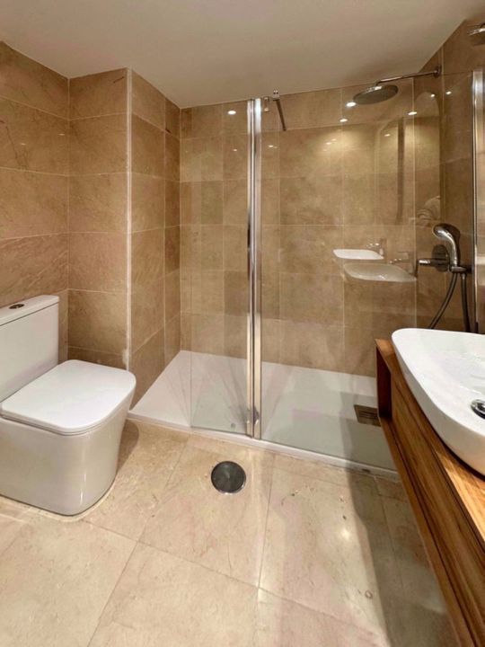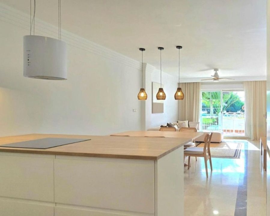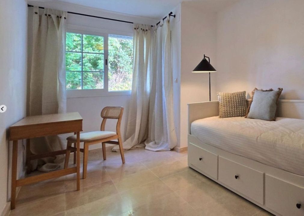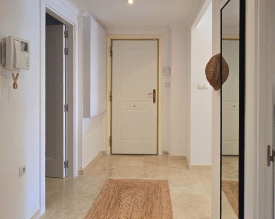 Geniet van vloerverwarming in de badkamers, efficiënte airconditioning, drie ruime slaapkamers, twee onberispelijke badkamers en een privéterras met directe toegang tot uitnodigende zwembaden. Extra voordelen zijn onder meer een eigen opslagruimte en een privé parkeerplaats. Deze toplocatie, genesteld in de rustige, weelderige Urbanización Las Lomas del Río Real, biedt gemakkelijke toegang tot het strand, eersteklas golfbanen, het winkelcentrum La Cañada, het bruisende centrum van Marbella en topscholen, en combineert rust met connectiviteit.