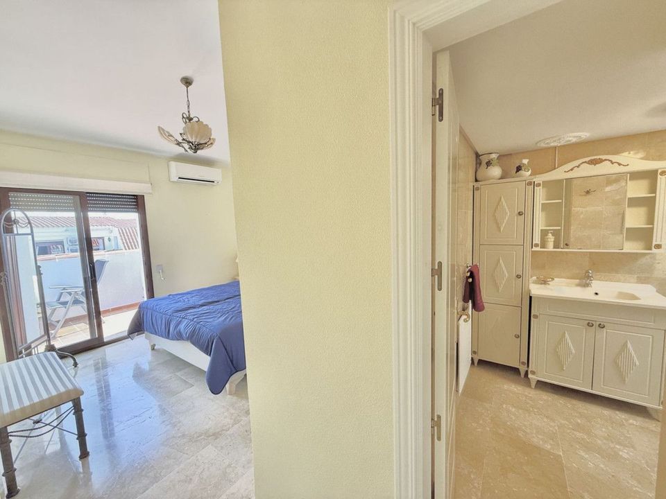 While not directly on the beach, it is just a **5-6 minute drive** from the finest beaches and the vibrant atmosphere of **Puente Romano**. In exchange, you gain something truly extraordinary: **breathtaking views from two spacious terraces**, where every morning starts with the **majestic La Concha mountain, the endless blue sea, and a stunning panorama of Gibraltar and Africa on the horizon**.