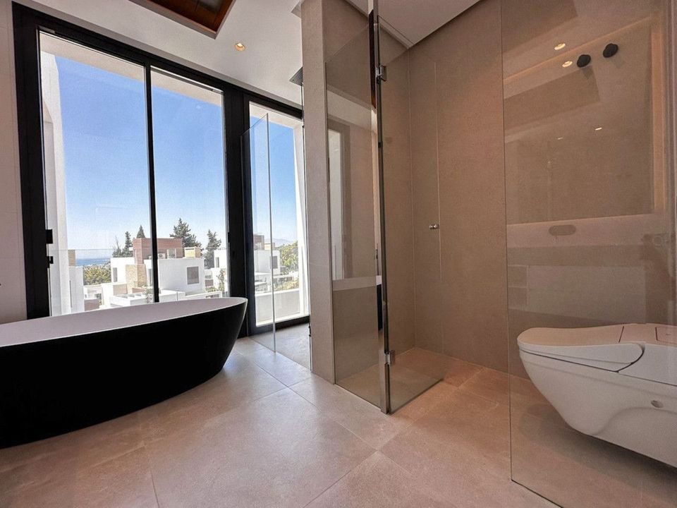 With a plot of 1000m2, a total living area of 730m2, large terrace of 225m2 and includes 5 bedrooms and 5 bathrooms, a spacious living room, an open plan kitchen equipped with the highest quality furniture and appliances, a private lift connecting each level of the property, cinema, sauna and hammam, under floor heating, a rooftop solarium with beautiful views towards the sea and private garage for 2 cars + 2 parking spaces.