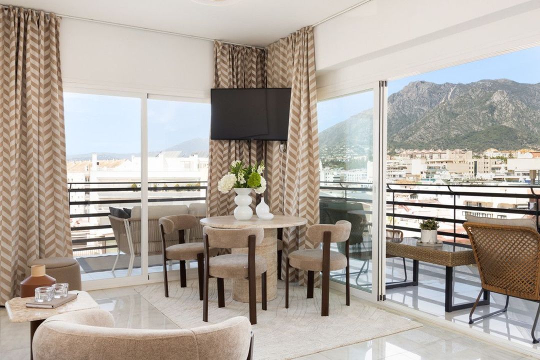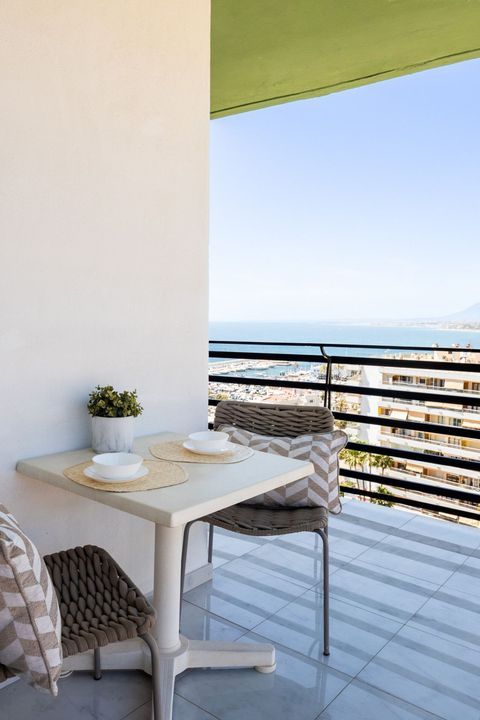 The property has a total area of 72 sqm, consisting of 52 sqm of living space and a generous 20 sqm wrap-around terrace. The terrace offers views of the sea and beach, as well as the mountains and the Old Town. Large panoramic windows provide abundant natural light and an open, airy atmosphere. Enjoy stunning sunsets, and in the evening, the rear side of the terrace reveals Marbella's sparkling lights against the mountains and the Old Town – truly the best of both worlds.