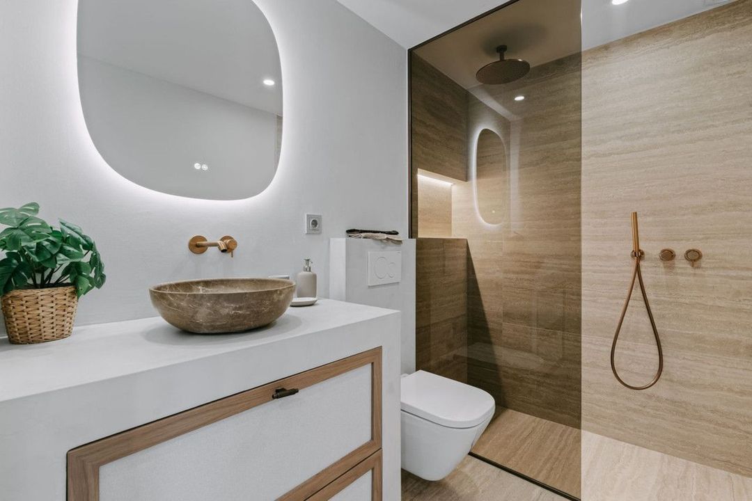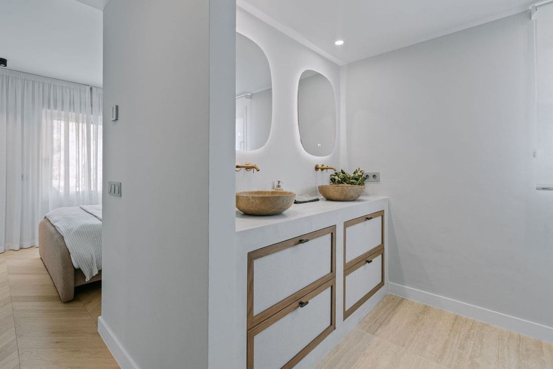 De woning beschikt over drie ruime slaapkamers, waarvan twee met en-suite badkamer, een extra badkamer en een gastentoilet. Het interieur is ontworpen door de bekroonde Studio Marbella / Amura Interiors en kenmerkt zich door hoogwaardige materialen en een moderne, elegante uitstraling.