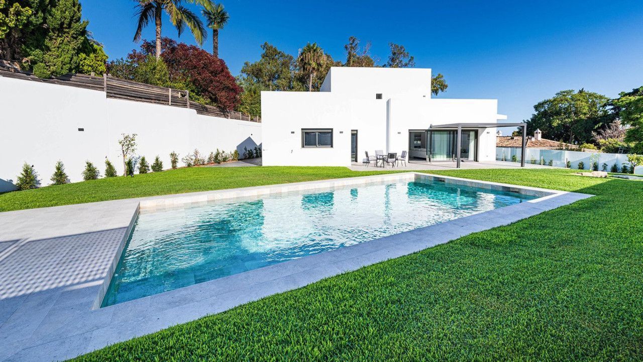 Built in 2024, this unique property combines privacy, elegance, contemporary design, and an unbeatable location, just minutes from the beach and premium amenities. With a 1,485 m² plot and 420 m² of living space, this villa offers spaciousness, natural light, and maximum comfort. Distributed over three floors, the ground floor comprises a grand entrance hall, a magnificent living-dining room with several distinct areas seamlessly integrated with the outdoors thanks to its large windows connecting the spacious terraces, the pool, and the garden, a guest toilet, a fully furnished and equipped kitchen, laundry room, a staff bedroom with en-suite bathroom adjacent to the kitchen, and two spacious bedrooms with two en-suite bathrooms. The first floor features a large master suite with access to a spacious terrace, comprising a large bedroom, dressing area, and bathroom, plus another bedroom with an en-suite bathroom. The third floor features a large solarium terrace with panoramic views of Marbella. Large parking area inside the plot.