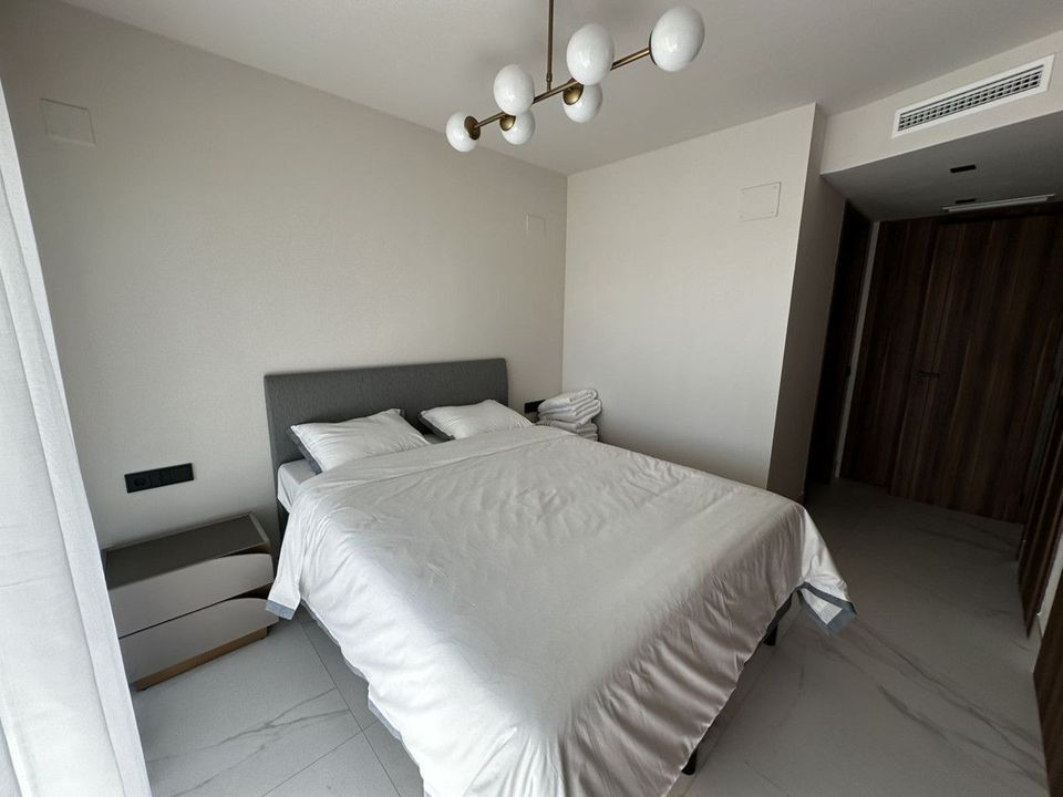 The apartment is offered fully furnished and in brand-new condition. It features a bright open-plan living and dining area, a fully equipped modern kitchen with high-end appliances, and a spacious enclosed terrace, perfect for enjoying the Mediterranean climate year-round.