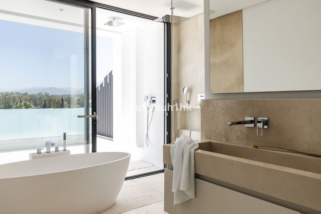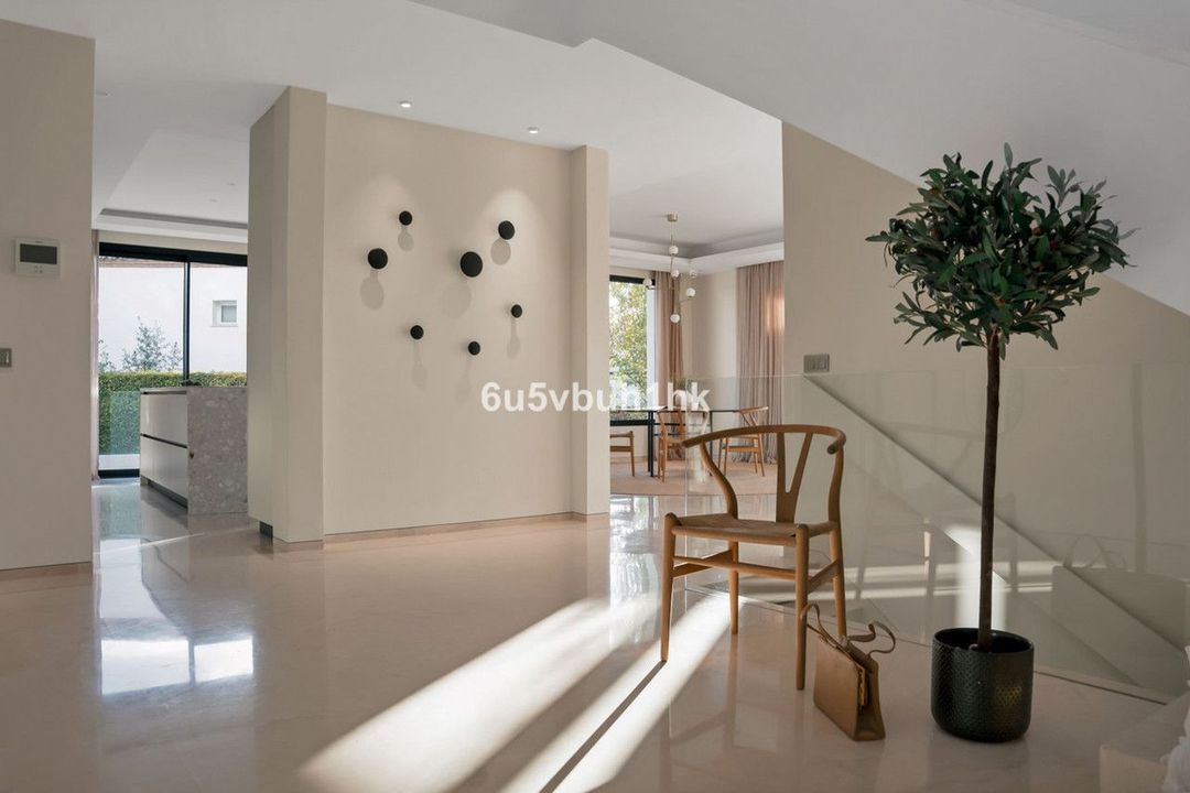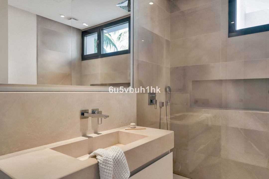 This villa has the most innovative technology. You can control lighting, music, air conditioning and security via wifi. This villa has 7 bedrooms with bathroom en-suite, a gym, music room and a tv-room in the basement, a spacious living room with large windows equipped with electric curtains. The villa bathes in natural light. High quality kitchen with custom made Terrazzo surfaces, appliances of last generation and taps by famous Swedish brand Tapwell.