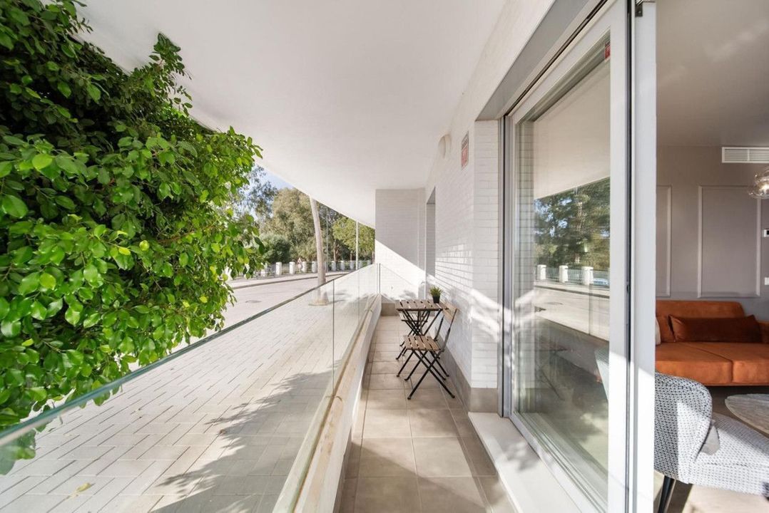 Modern and bright ground-floor interior apartment for sale in the prestigious complex on Avenida Miguel de Cervantes – renowned for its spectacular rooftop swimming pools and terraces.