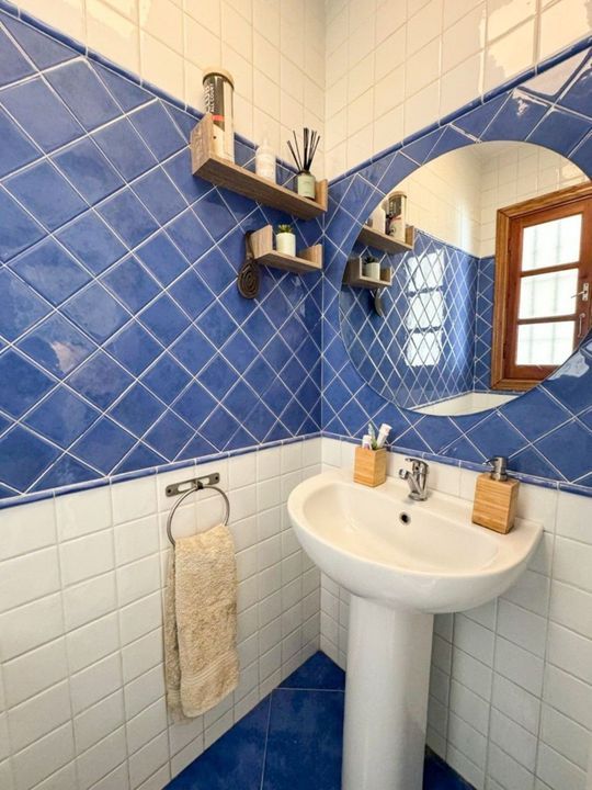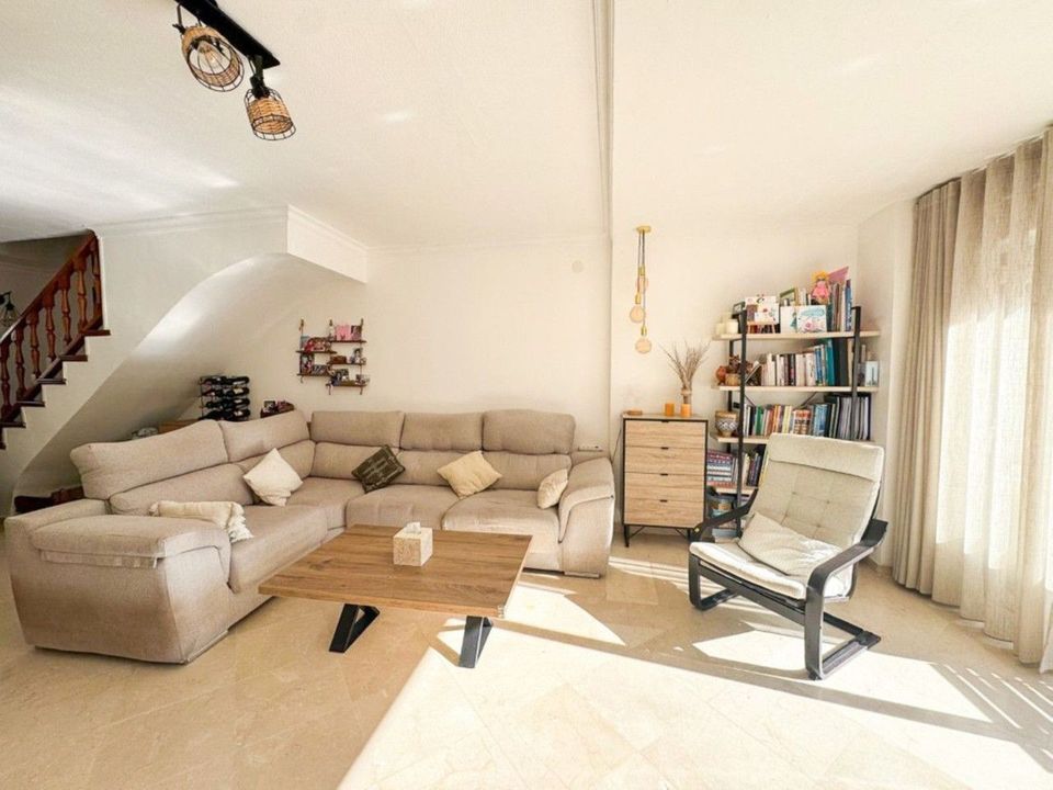 This delightful two-bedroom townhouse is ideally located within walking distance of all the amenities of Elviria, including shops, restaurants and the beach. Built in 1984, the property is situated within the gated community of Pueblo Los Arcos, set amongst picturesque and well-maintained communal gardens featuring a large swimming pool, tennis courts and a children's play and football area. Marbella is just a five-minute drive away and Málaga Airport approximately thirty minutes. The townhouse is beautifully presented and accessed through the immaculate communal gardens. The ground floor comprises a modern fully fitted kitchen, guest cloakroom/WC and a spacious lounge and dining area with feature fireplace and patio doors, complete with electric security blinds, leading onto a sunny private terrace. On the upper floor there are two double bedrooms, both with fitted wardrobes and private balconies overlooking the communal gardens, together with a newly refurbished family bathroom. This is a charming property set within a traditional Spanish pueblo environment, just a short stroll from the beach and all local amenities. Features include: air conditioning, marble flooring, fireplace, recently fitted double glazing and a private terrace.