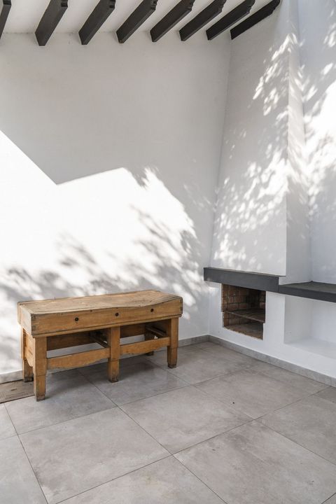 The villa offers an exceptional outdoor area, including a tennis court and a large garden. There is also a guest toilet and changing room—ideal for enjoying the outdoor lifestyle. Next to the stunning 14-meter-long, 2.5-meter-deep pool, you'll find an elegant outdoor dining area, perfect for entertaining.