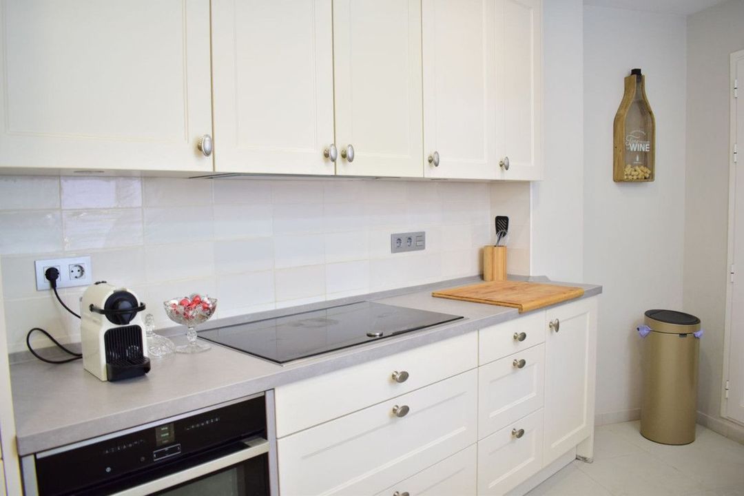 We offer a unique apartment in one of the best beachfront complexes in Elviria. This cozy, fully renovated two-bedroom apartment with a spacious living room and a panoramic terrace is a perfect choice for those who appreciate comfort and privacy. It features manicured gardens, a private tennis court, a swimming pool, a pond, and private access to some of Marbella's best beaches. The new kitchen is equipped with MIELE, NEFF, and LIEBHER appliances. New air conditioning system from DAIKIN. It also features a separate laundry room and dressing room. A spacious 25 m² storage room and a parking space are included.