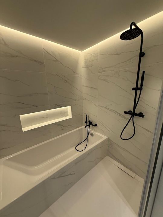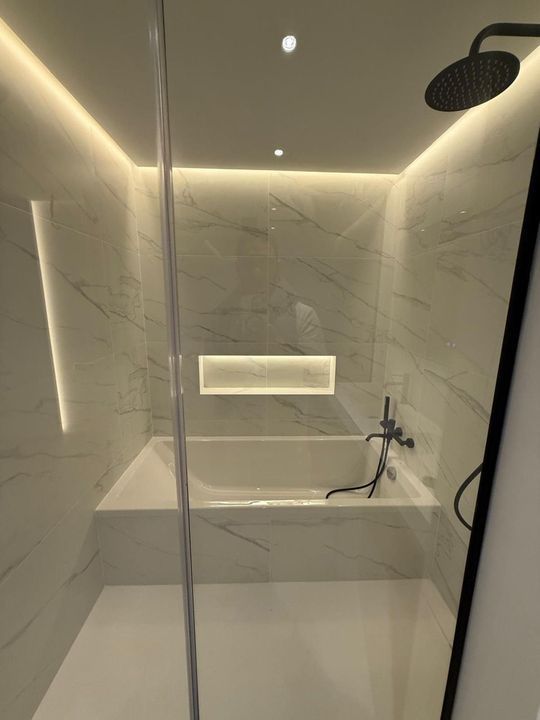 The apartment features a bright open-plan living and dining area designed to maximise light and the sense of space, seamlessly connecting with the private garden of 95 m², where pleasant views and a high level of privacy can be enjoyed. The main bedroom is spacious and bright, with a walk-in wardrobe and en-suite bathroom, ensuring comfort and independence.