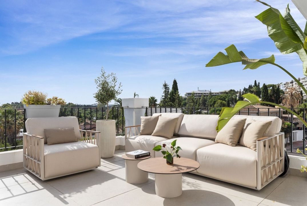 Penthouse Las Lolas is one of those rare residences that immediately conveys harmony, style, and thoughtful design. Positioned at the top of one of Nueva Andalucía's best-located buildings, and just minutes from both Marbella Arena and Puerto Banús, this home offers a unique combination of tranquility, convenience, and breathtaking views. Here, Mediterranean living meets modern architecture in a dual-level penthouse featuring 304 m² of interior space and 100 m² of terraces, crafted to be enjoyed from morning to night.
