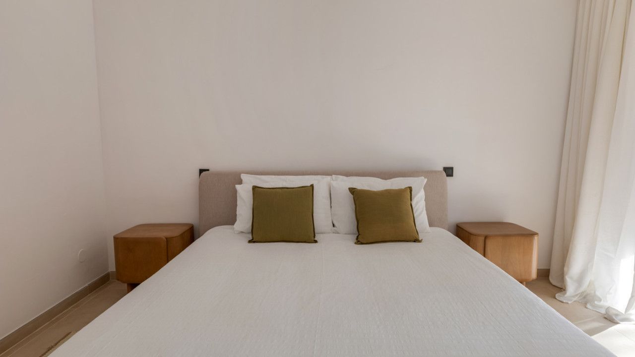 Het appartement biedt uitzonderlijk ruime leefruimtes, gevuld met natuurlijk licht en afgewerkt volgens een hoge, moderne standaard. De ruime open woon- en eetkamer sluit naadloos aan op een groot privéterras met directe toegang tot de tuin, perfect om te ontspannen, buiten te dineren of het hele jaar door te genieten van de mediterrane levensstijl.