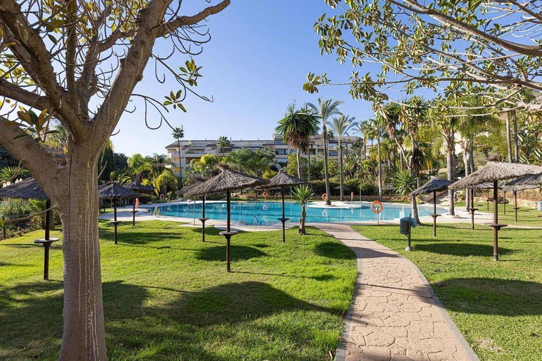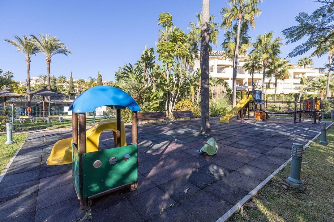 Duplex apartment located in the prestigious Las Brisas urbanisation, Bahía de Marbella, just 5 minutes from Marbella centre and within walking distance to some of the area's best beaches.The sea is approximately 2 minutes away, with two beachfront restaurants within 5 minutes on foot and an Aldi supermarket nearby, providing excellent convenience for daily living. The gated complex offers extensive facilities, including 24-hour concierge and security, two outdoor swimming pools (one open year-round), an on-site restaurant, tennis courts, paddle board storage and a children's playground.
