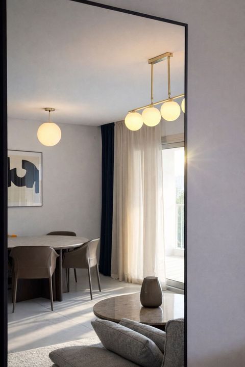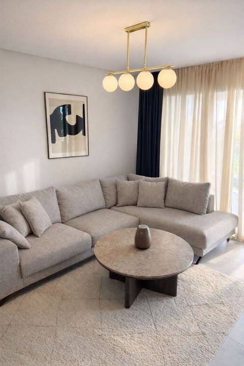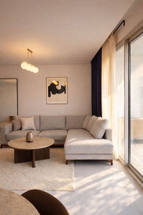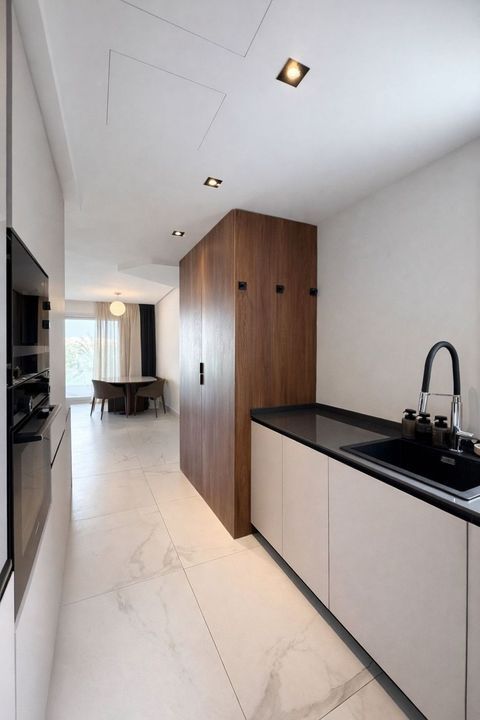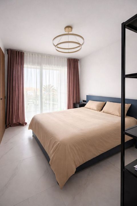 The apartment is offered fully furnished and in brand-new condition. It features a bright open-plan living and dining area, a fully equipped modern kitchen with high-end appliances, and a spacious enclosed terrace, perfect for enjoying the Mediterranean climate year-round.