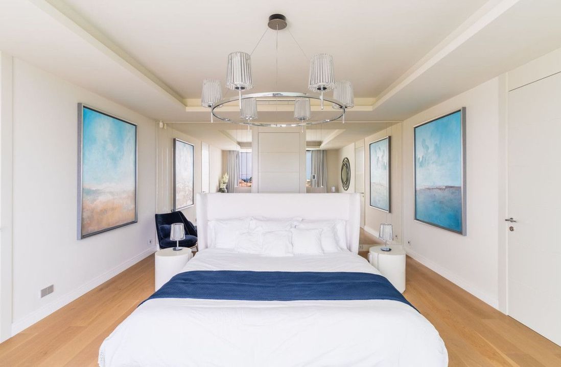 The first floor comprises the master bedroom with a spacious walk-in wardrobe and bathroom. There are also three additional bedrooms, two of which have private terraces with sea views.