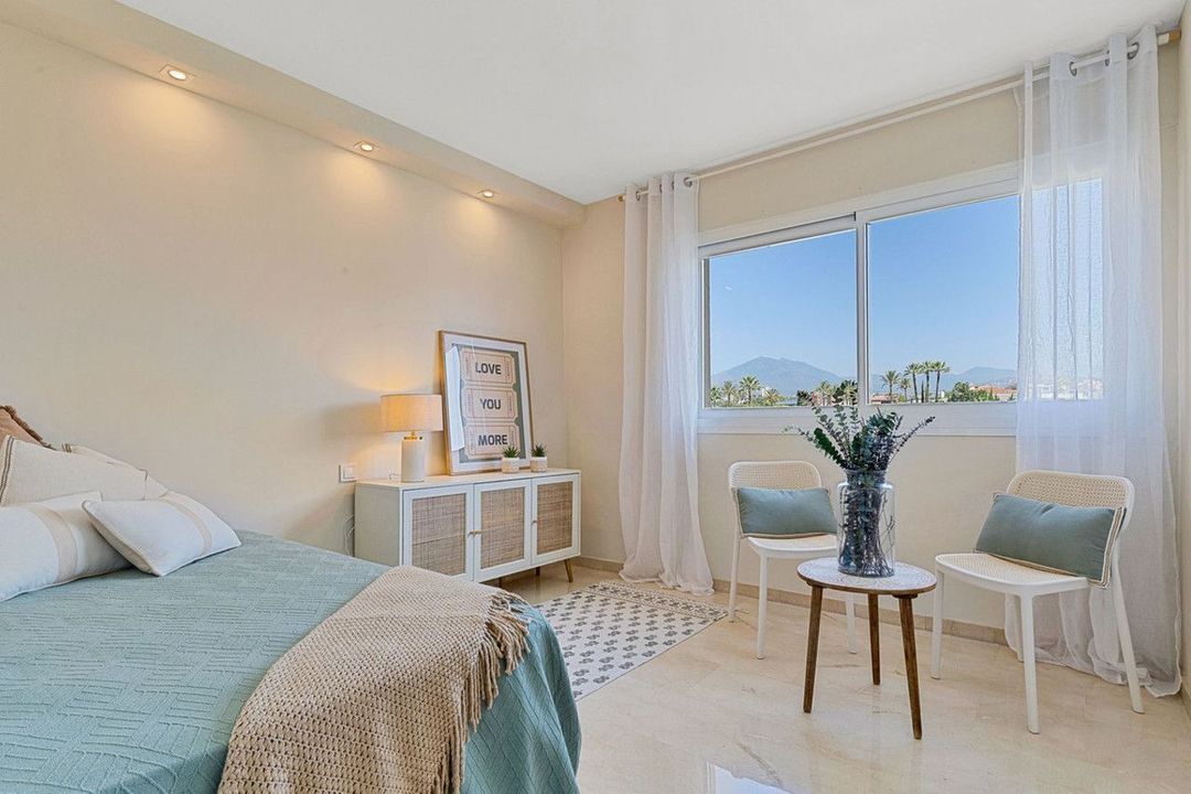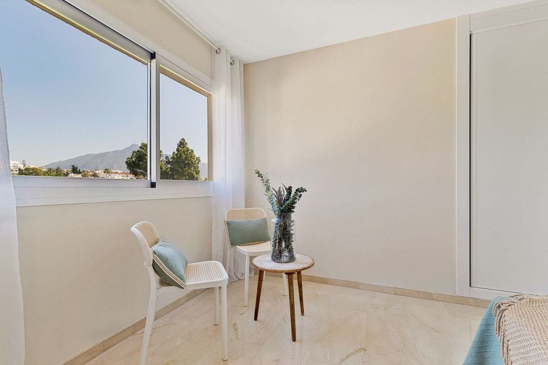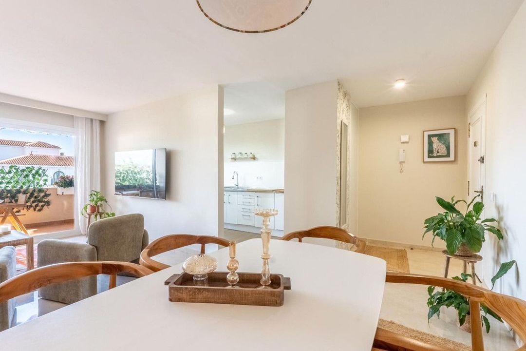 Bright and spacious recently renovated two-bedroom, two-bathroom apartment with two terraces and stunning mountain and sea views, just a 12-minute walk (2 minutes by car) from the beach and Puerto Banús. Located in a gated community with a swimming pool and surrounded by all services.