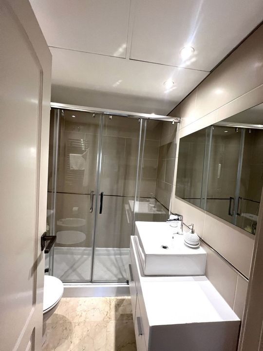 Set on the fourth floor, the apartment welcomes you with an elegant entrance hall leading into a bright and spacious living–dining area that opens onto a generous terrace. A fully renovated designer kitchen enhances the home's contemporary appeal. The master suite features terrace access and a refined en-suite bathroom, complemented by a comfortable second bedroom and full guest bathroom.