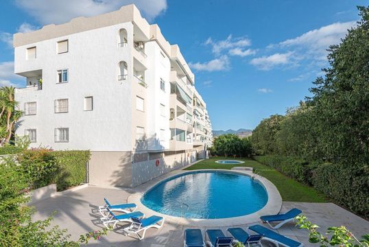 Set within a secure gated community surrounded by lush landscaped gardens, residents enjoy access to four swimming pools, including one with seawater, creating a peaceful and exclusive environment.