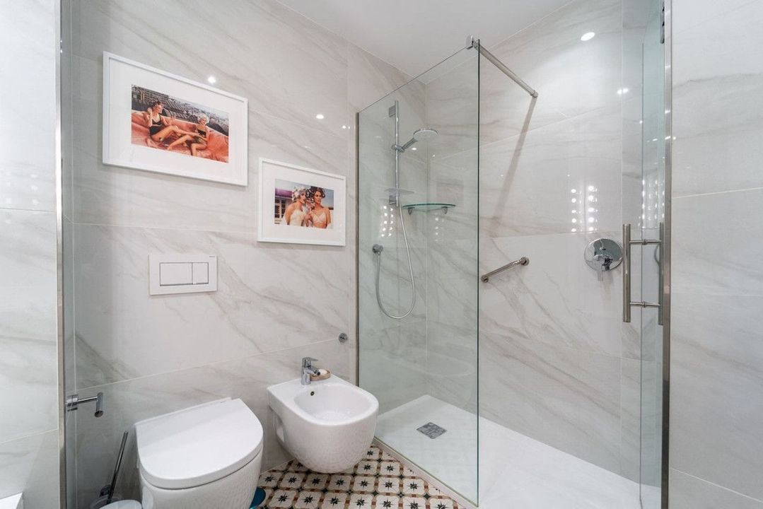 This spacious three-bedroom, three-bathroom apartment with a perfect South orientation is located on the second floor and has spectacular panoramic open views of the sea and the entire bay of Marbella. On its terrace, there is enough space for a relaxation area and another area where you can enjoy unforgettable evenings by the sea with family and friends, al fresco dining, or simply lie comfortably listening to the sound of the waves with a good book. A new and elegant layout houses 3 bedrooms with en-suite bathrooms and a designer open-plan design kitchen where you can enjoy a beautiful view of the Mediterranean Sea while cooking your favorite meals or having a glass of wine with friends.