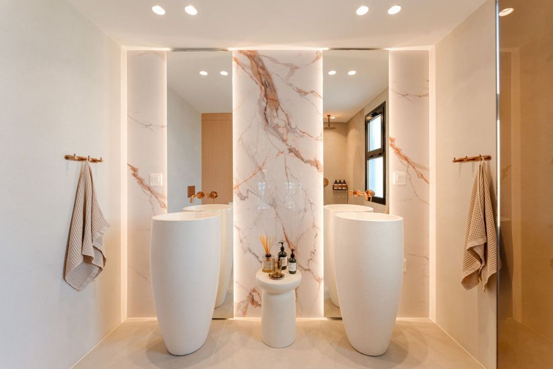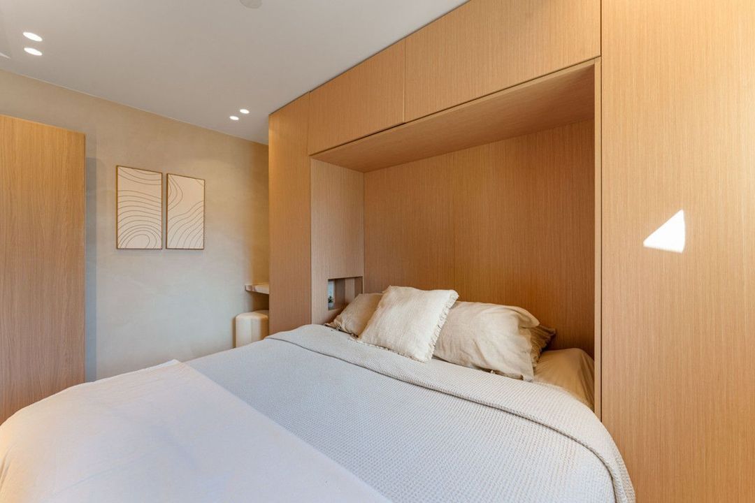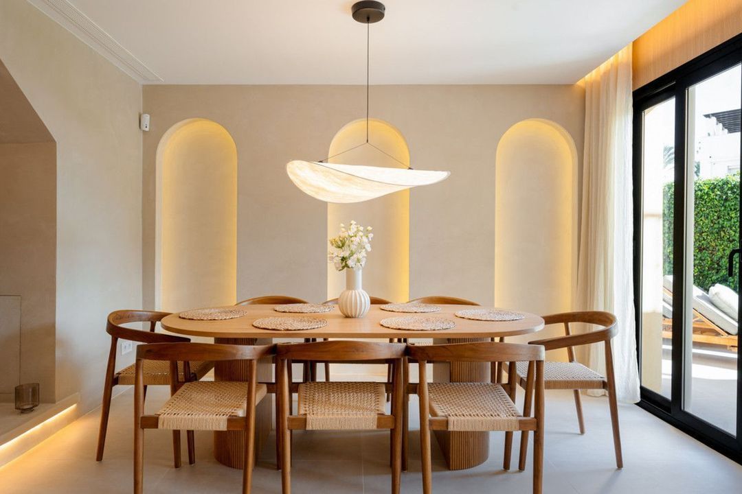The townhouse spans four bedrooms and three bathrooms, including one en-suite, a full family bathroom, and a guest toilet. Every detail of the renovation has been executed with precision and taste. The interiors feature bespoke carpentry, microcement finishes, and discreet LED lighting that creates a warm and inviting ambiance. The result is a home that feels both sophisticated and comfortable, equally suited for year-round living or as a luxurious holiday retreat.