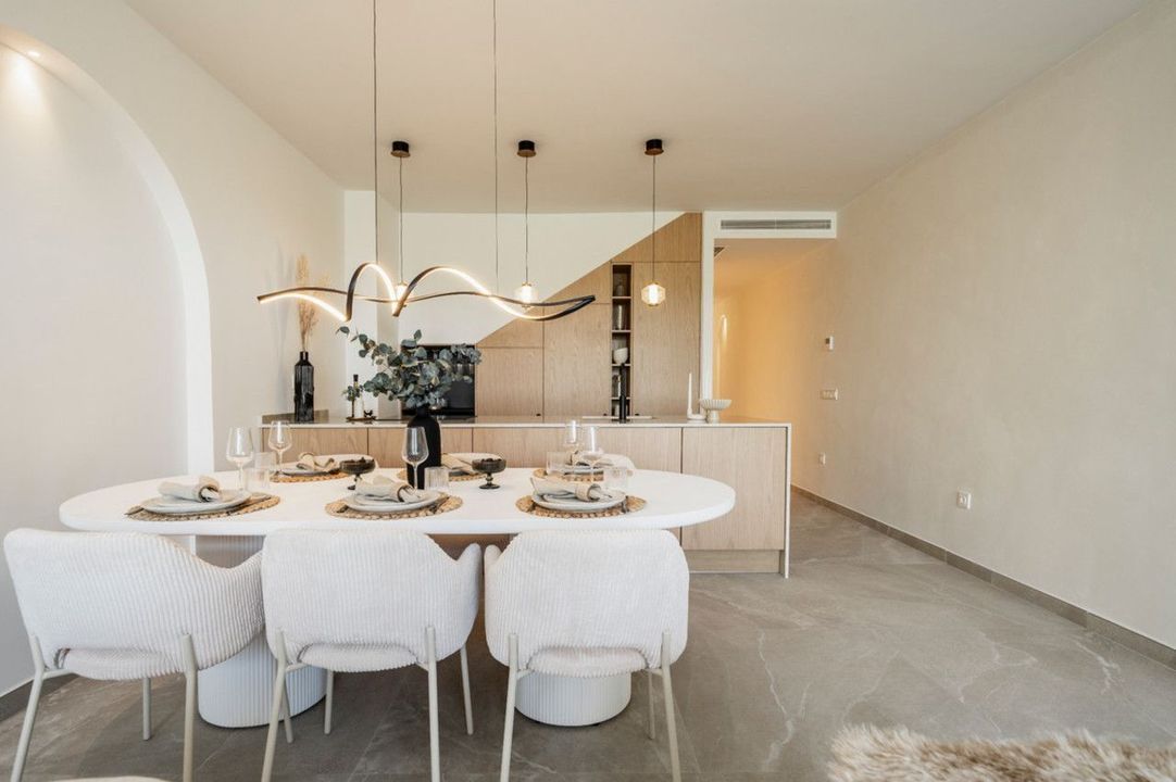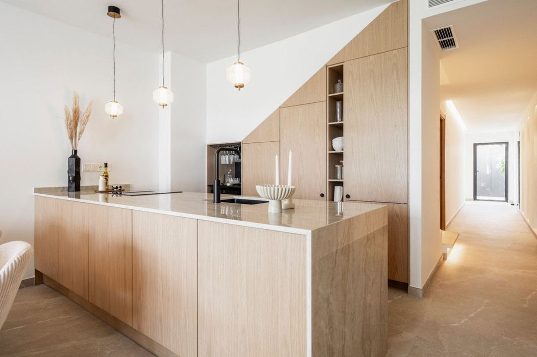 De gemeenschap beschikt over volwassen tuinen met hoge palmbomen en een rustige gemeenschappelijke zwembad, wat een kalme en privé sfeer creëert. Recent volledig gerenoveerd, combineert Casa Preciosa hoogwaardige materialen met een slimme, stijlvolle indeling over twee lichte verdiepingen. De begane grond biedt een open woonruimte met een moderne keuken en een gezellige woonkamer die uitkomt op een zonnig terras — een ideale plek om buiten te dineren met uitzicht op de tuin en het zwembad, en directe toegang tot de gemeenschappelijke groene zones.