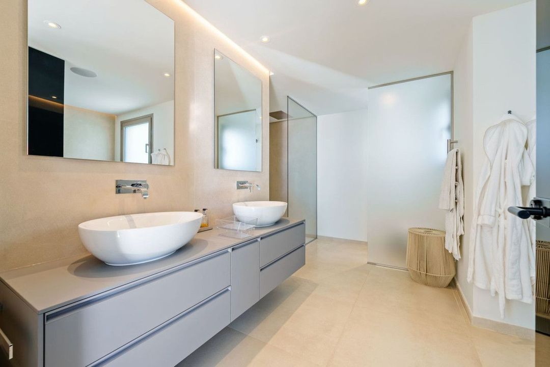 The upper level is dedicated entirely to the master suite — a private sanctuary with its own terrace, dressing area, and bathroom finished to the highest standard. The rooftop solarium provides an additional outdoor retreat with uninterrupted panoramic views.