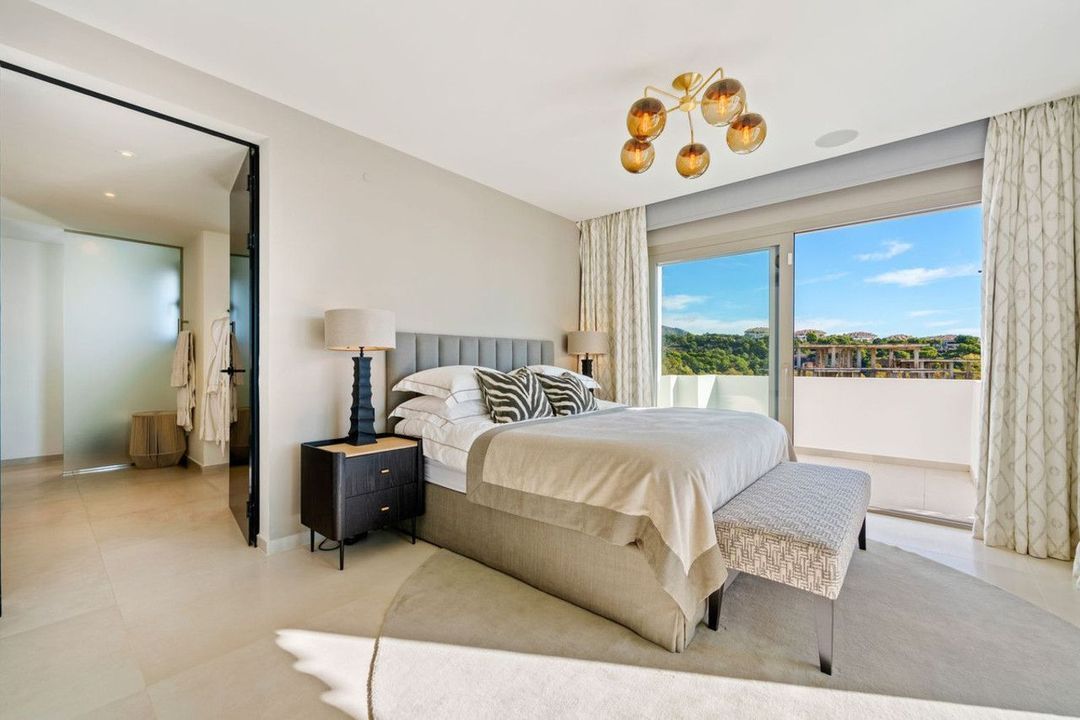 This exceptional duplex penthouse is located within an exclusive gated community in Aloha, one of the most prestigious residential developments in Nueva Andalucía. Set in an elevated position, the property enjoys panoramic open views across the surrounding greenery, mountains, and toward the Mediterranean. The community is renowned for its contemporary architecture, privacy, and resort-style facilities, including landscaped gardens, multiple swimming pools, spa, gym, and 24-hour security.