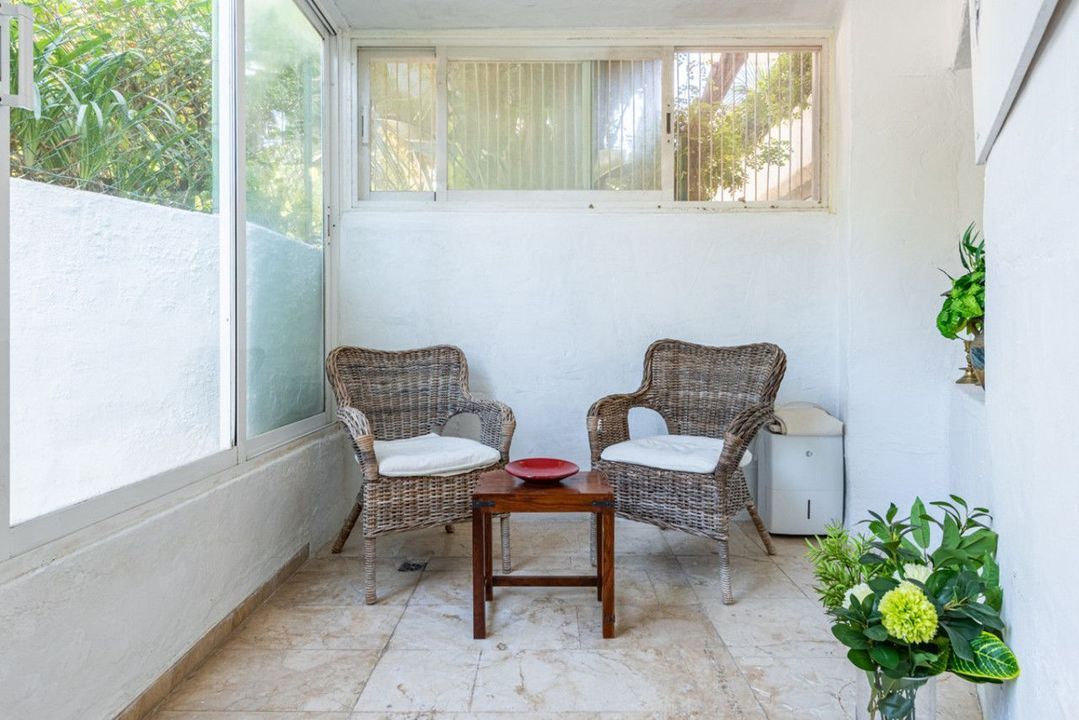 Prachtig appartement met twee slaapkamers op de begane grond, gelegen in de gewilde Birdie Club gemeenschap in Río Real, Marbella, deze gerenoveerde woning biedt een rustige en veilige omgeving op slechts een korte loopafstand van het strand, dicht bij de golfclub, en naast de toekomstige Four Seasons resort. Volledig gerenoveerd in 2021, het appartement beschikt over lichte en ruime interieurs en een eigen ingang. Deze woning beschikt over twee slaapkamers met ingebouwde kasten en toegang tot een geglazuurd terras op het oosten, een badkamer en een comfortabele woonkamer met een open keuken die direct leidt naar het hoofdterras op het westen, ideaal om te genieten van de middagzon en de rustige omgeving. De gemeenschap biedt goed onderhouden tuinen, een groot gemeenschappelijk zoutwater zwembad, en een aparte kinderbad, waardoor een ontspannen, resort-stijl het hele jaar door. De woning wordt volledig gemeubileerd verkocht en beschikt over een eigen parkeerplaats, met extra parkeergelegenheid op straat.