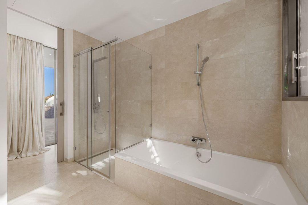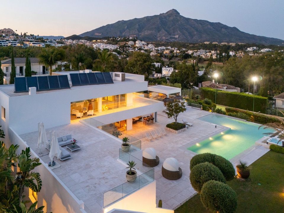 Prachtige moderne villa gelegen in de prestigieuze wijk van La Cerquilla, genesteld in het hart van Nueva Andalucía. Deze exclusieve zeven slaapkamer residentie biedt uitzonderlijke privacy en een adembenemend panoramisch uitzicht op de iconische La Concha berg en de Middellandse Zee kustlijn. Met zijn uitstekende locatie in de buurt van top golfbanen, internationale scholen, luxe restaurants en de levendige jachthaven Puerto Banús, het is een uitstekende investering en levensstijl kans. Binnenin de villa beschikt over uitgebreide interieurs doordacht ontworpen met natuurlijke texturen en verfijnde afwerkingen. Zwevende plafonds, elegante verlichting, en een harmonieuze binnen-outdoor stroom definiëren de belangrijkste woonruimtes. Aangepaste meubels, organische materialen, en gecureerde decorelementen, zoals geweven wandkunst en handgemaakte keramiek toevoegen karakter en warmte in het hele huis. Op het bovenste niveau bevindt zich een rustige gang in galeriestijl met uitzicht op de begane grond, die leidt naar serene slaapkamers met weids uitzicht en eigen terrassen. In het hart van de villa is een strakke, moderne keuken uitgerust met premium apparatuur en moderne kasten, die stroomt in een ruime glazen afgesloten eethoek met vloer-tot-plafond ramen. Buitenleven is verhoogd met een opvallend zwembad en jacuzzi, Balinese-stijl ligstoelen, en een overdekt eetterras compleet met een open haard en barbecue ideaal voor het hele jaar door onderhoudend. Een uniek hoogtepunt is de privé tennisbaan aan de voet van de tuin, die een perfecte recreatieruimte biedt voor bewoners.