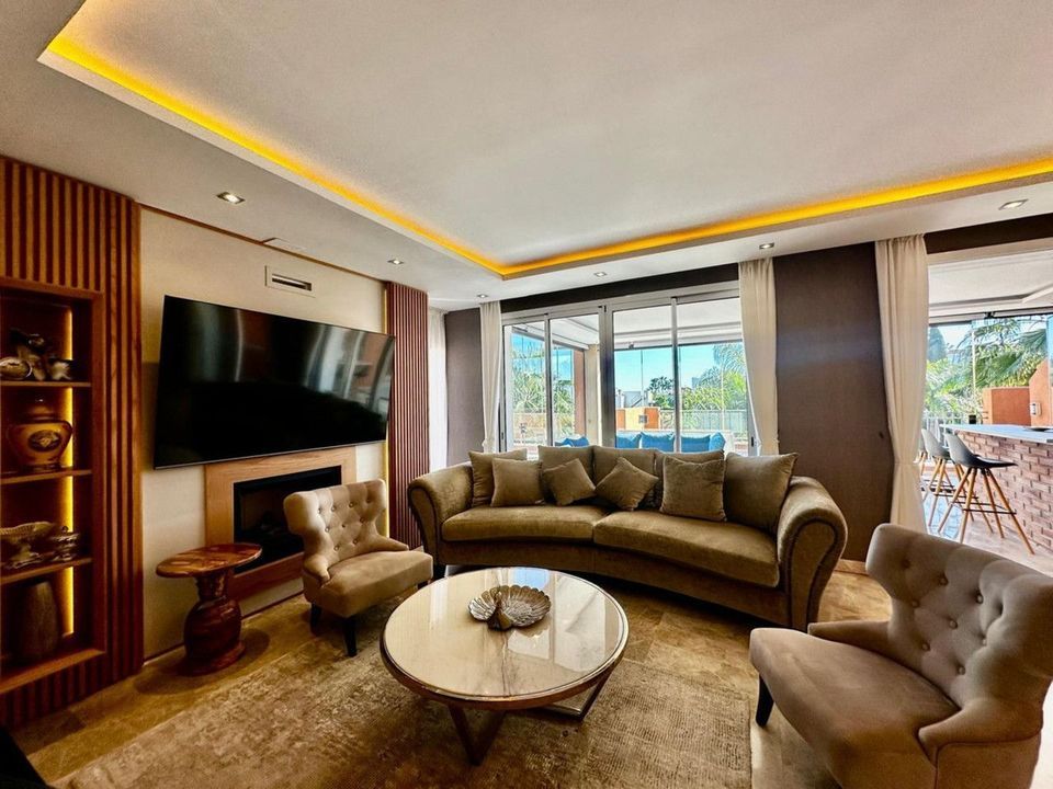 Spectacular duplex penthouse with 3 bedrooms and 3 bathrooms in an exclusive development in Nueva Andalucía, recently renovated combining elegance and comfort, on the main floor there are two spacious bedrooms and two bathrooms, a modern fully equipped kitchen with separate laundry area and a bright living-dining room with access to a wonderful covered terrace, perfect to enjoy with family and friends, from this terrace there is also access to a large open terrace ideal for relaxing outdoors, on the upper floor is the master bedroom with en-suite bathroom and access to a large private solarium with stunning views of the Mediterranean Sea and the mountains, the development offers a peaceful and distinguished environment with landscaped areas, swimming pool and security, the property also includes two parking spaces and a storage room, a unique opportunity for those seeking luxury, comfort and unbeatable views in one of the most exclusive areas of Marbella.