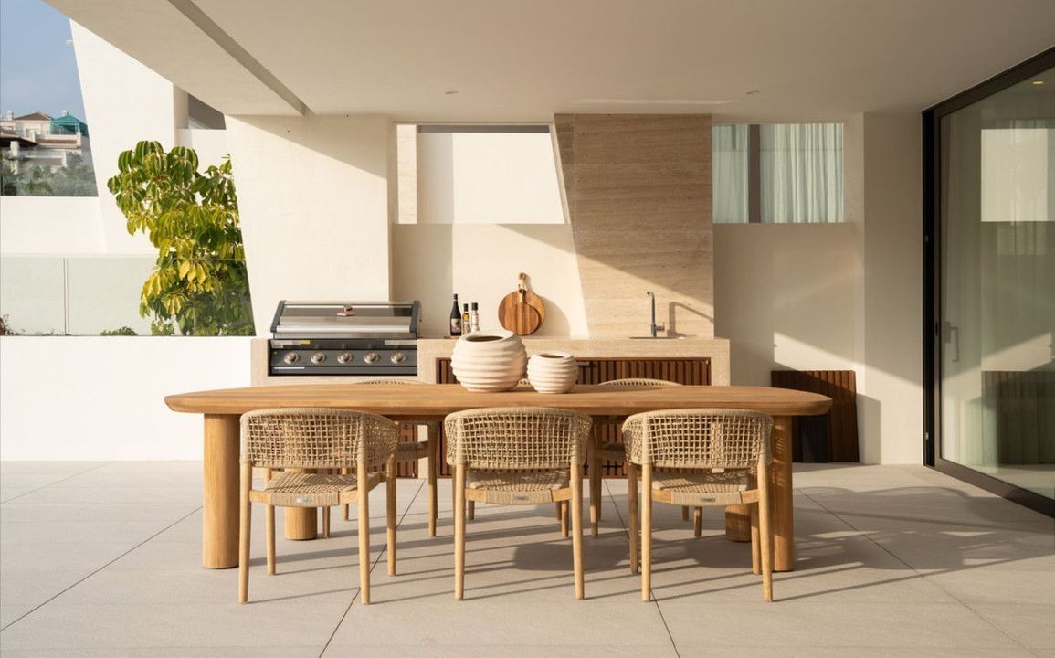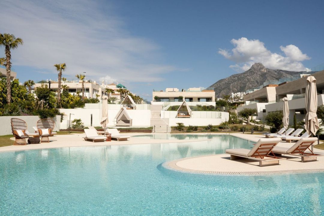 Designed for ultimate comfort, the duplex boasts a fully fitted kitchen with high-end appliances, underfloor heating throughout, and air conditioning. The private and covered terraces offer stunning garden and pool views, while additional luxuries include a jacuzzi, gym, spa, games room, and tennis/paddle courts. The basement provides extra space for customization, ensuring every need is met.