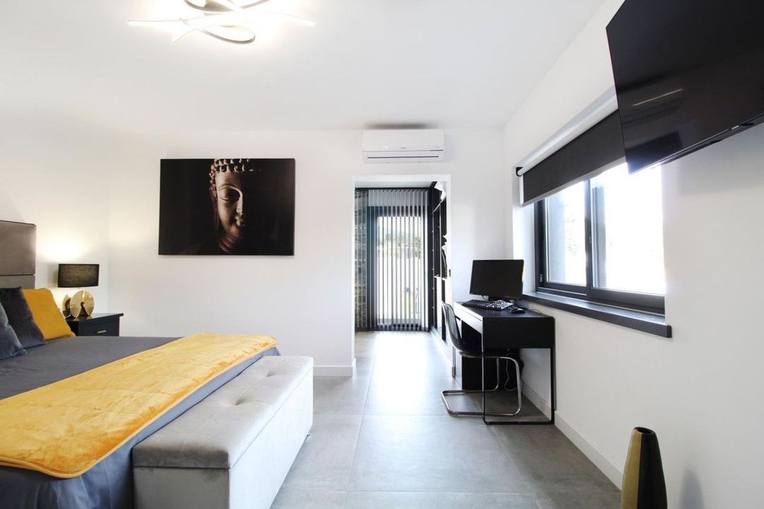 Gebouwd met hoogwaardige materialen, beschikt de villa over drie ruime slaapkamers en drie volledig uitgeruste badkamers, evenals een gastentoilet. Geniet van een grote, state-of-the-art keuken, een open woon-/eetkamer, een moderne open haard en een barbecueplaats, prachtig verlicht door LED-verlichting door de hele woning. Het prachtige terras leidt naar een fantastische zwembad met ondiep gedeelte en een weelderige tuin, waardoor het minimalistische ontwerp van de villa en de grote ramen die genieten van overvloedig natuurlijk licht, naar voren komen.
