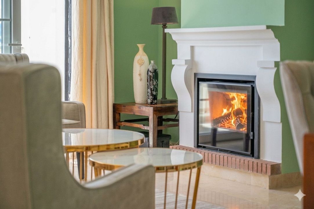 Step through the charming cobblestone street entrance onto the main living floor, where a warm, characterful home immediately welcomes you. To the right, a separate kitchen impresses with its wooden countertops and a traditional feel that perfectly complements the Andalusian surroundings. The open living and dining area flows naturally towards a covered terrace, ideal for al fresco dining, with lovely views over the golf valley and the mountains beyond. An enclosed woodburner and modern air conditioning and heating throughout ensure the home is a tranquil and comfortable retreat in every season.
