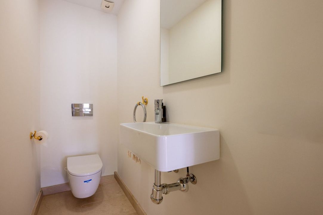 On the lower floor, two generous bedrooms with fitted wardrobes share a newly renovated bathroom. A separate guest toilet and a practical laundry room round out the layout, thoughtfully designed for comfortable everyday living.