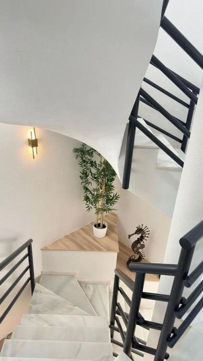 On the main floor, there is a living room with direct access to the garden and pool, a kitchen, and a bathroom. On the first floor, there are three bedrooms and two bathrooms. The upper floor features a 45 m² private solarium with open views and sea views, perfect as a relaxation area or for outdoor gatherings.