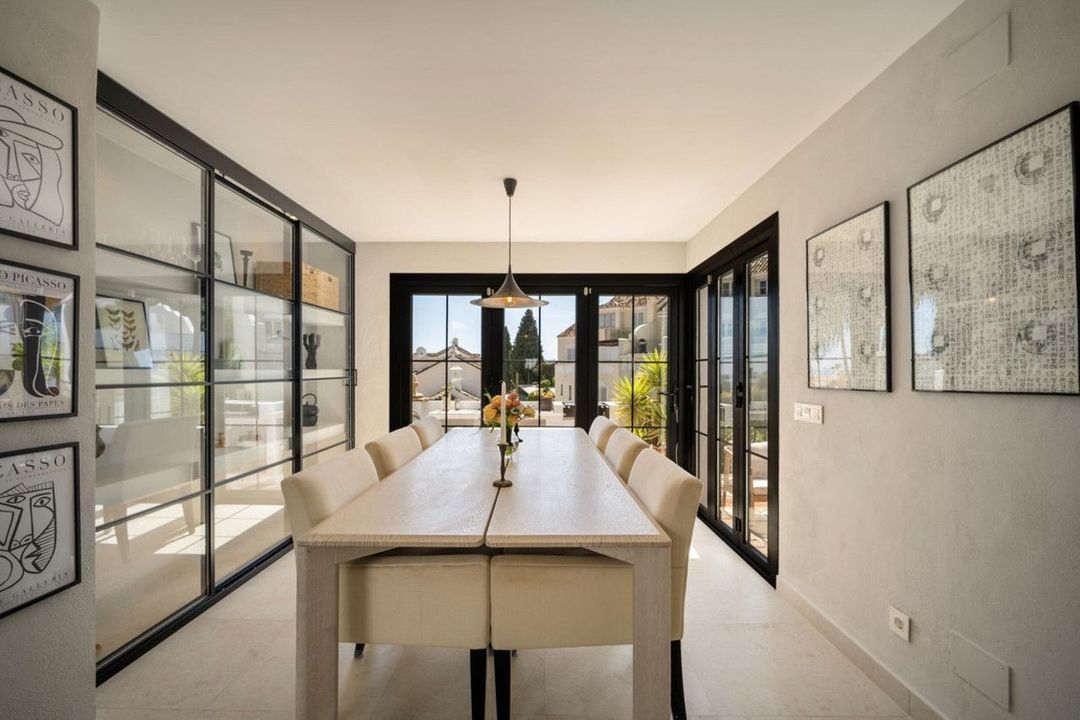 Gelegen in het prestigieuze woongebied van Marbella's Golden Mile, combineert dit prachtig gerenoveerde herenhuis in Andalusische stijl traditionele architectuur met moderne Scandinavische interieurs en biedt het een unieke mix van charme, comfort en functionaliteit.