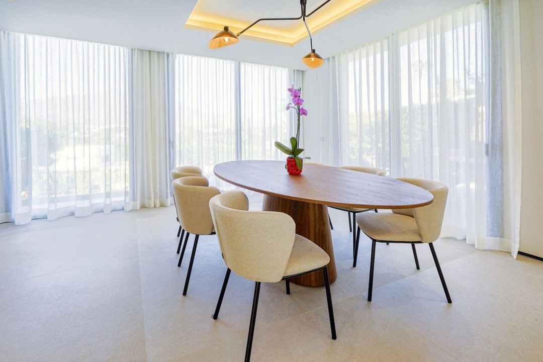 This absolutely beautiful villa has just been completely reformed in a modern contemporary style and is situated in Nueva Andalucia, just a short walk from services and restaurants, including a supermarket. The large commercial centre of Central Plazas is just a 10 minute walk away. The villa is in a no-through road, guaranteeing a peaceful and private location, free of traffic. The villa itself is very impressive and the materials used in the refurbishment are top quality. Upon entering on the villa we find a spacious open plan configuration, with large windows that allow plenty of natural light into the property. This area incorporates the kitchen, with island and completely fitted out with quality appliances including a wine fridge, the dining area and the living area with fireplace . There is also a breakfast area and several terraces to enjoy the ambient climate. The laundry room and storage are in a separate area. On the upper level we find three bedrooms, all with modern ensuite bathrooms and two of the bedrooms have a nice terrace. On the lower level of the property, we find two more bedrooms, two bathrooms, a TV / Cinema room and a games room with pool table / table tennis table. There is also an office on this level. Several features have been incorporated into the design such as a Demotic system that controls the lighting, heating, cooling, electric blinds and the security. Everything can be controlled via a mobile smartphone. The villa has good security with CCTV cameras both inside and outside the villa and these cameras can also be accessed from a smartphone. The landscaped gardens offer beautiful and open views of La Concha mountain and the villa also offers total privacy. Everything comes with a year guarantee, giving the new owner absolute confidence in this beautiful new home.