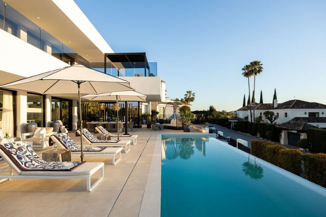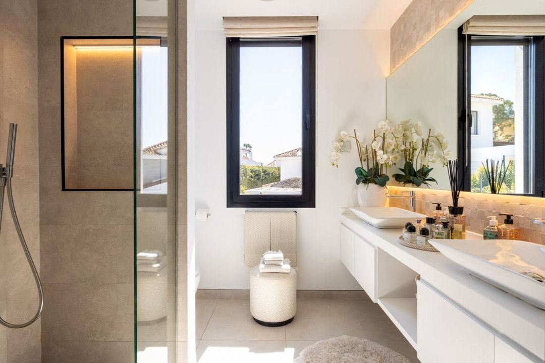 Four spacious bedrooms, including a tranquil master suite with direct terrace access, offer comfort and privacy, while a dedicated entertainment level with a wine bodega adds an exclusive touch. A private garage and driveway complete this exceptional home, where contemporary design meets the timeless appeal of Marbella's most sought-after golf setting.
