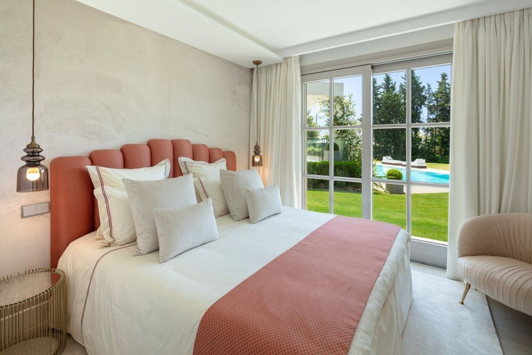 Prachtige villa gelegen in een eigen oase in het luxe Aloha gebied van de Golfvallei van Marbella. Dit prachtige pand ligt in een prestigieuze gated community en heeft een benijdenswaardige front-line positie met uitzicht op Aloha Golf Course. De villa bestaat uit een hoofdresidentie met vijf ruime slaapkamers, waaronder een luxe master suite met een kleedkamer. De slaapkamers ademen individualiteit uit met hun duidelijke accenten, maar hun samenhang is een bewijs van de slimme ontwerpbeslissingen. Er is een apart pension met één slaapkamer, ideaal voor gasten of bezoekers. De allure van deze villa ligt in de betoverende buitengebieden, waar een weelderige groene tuin en ruime terrassen de ideale omgeving bieden om het hele jaar door te genieten van het perfecte klimaat van Marbella. De groene omgeving van het hoofdhuis is versierd met groen, dat naadloos met de andere groene gebieden van het pand combineert. Deze unieke villa heeft een spectaculair uitzicht en luxe voorzieningen.