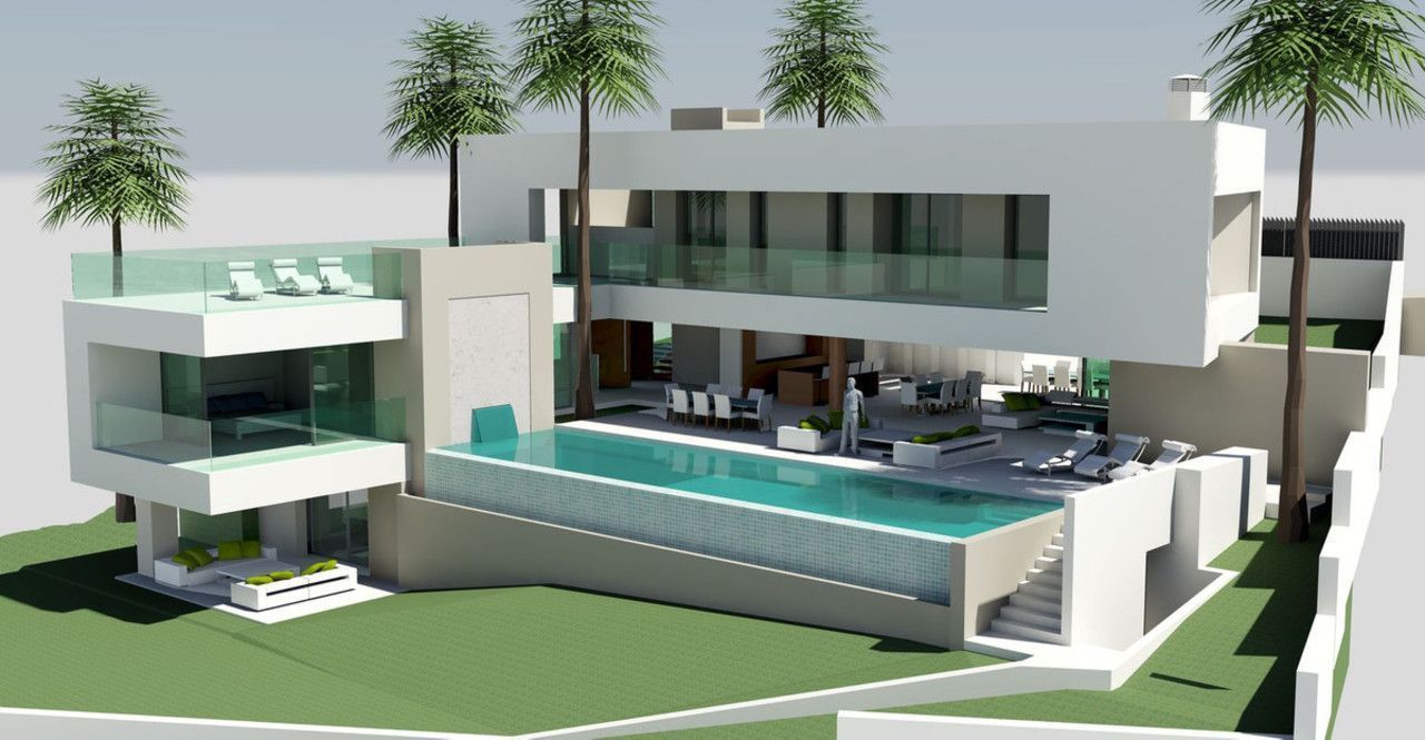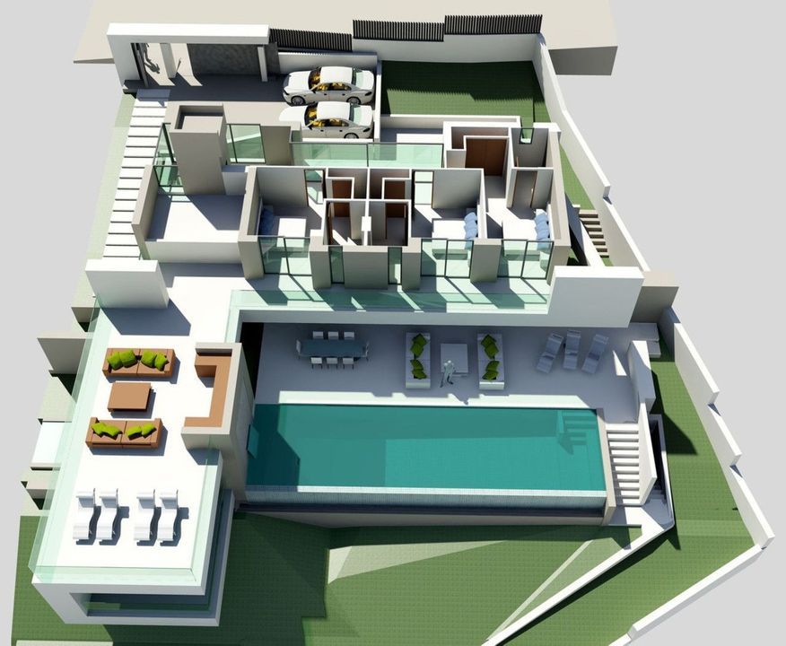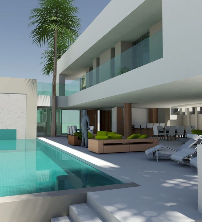 The project envisions a villa with 575.95 m² of constructed area, designed according to modern architectural principles, featuring: