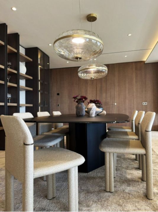 This extraordinary residence redefines the standard of modern luxury from the moment you enter. A majestic entrance hall welcomes you with a sense of grandeur that seamlessly continues throughout the home. The expansive living area impresses with its remarkable dimensions, offering a rare sense of openness and light that enhances every corner. Elegant, large-format marble flooring flows throughout the interior, adding a timeless sophistication.