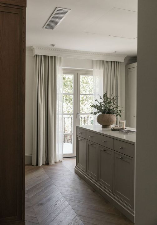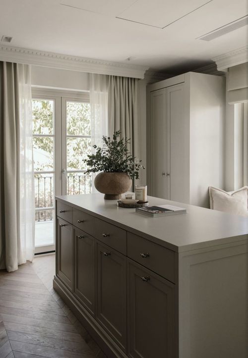 At the heart of the home is a beautifully tailored kitchen, marrying functionality with high-end design. The open-plan living and dining area is a masterclass in contemporary interior design, featuring curated furnishings, a soothing neutral palette, and warm wooden details. High ceilings and direct access to the terrace enhance the indoor-outdoor flow, infusing the space with natural light and an airy ambiance.