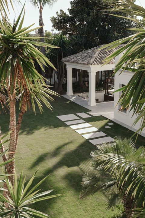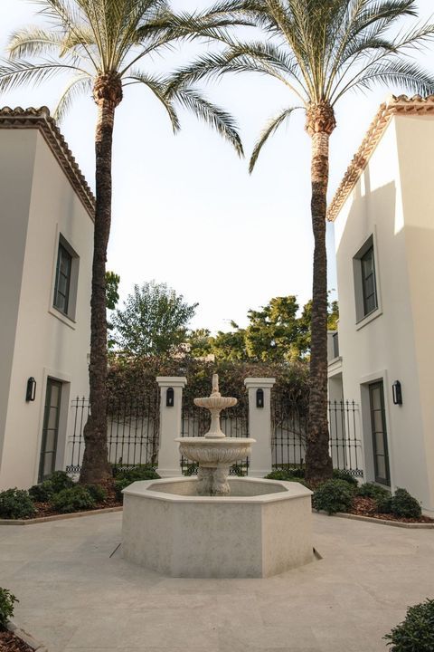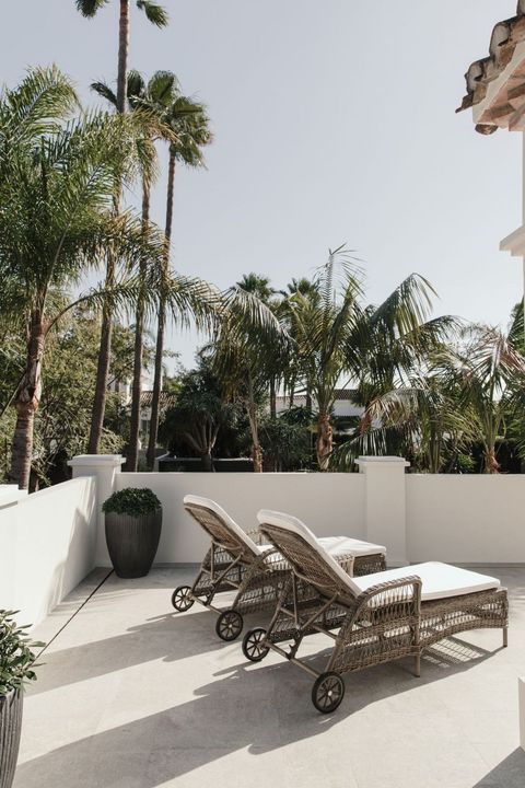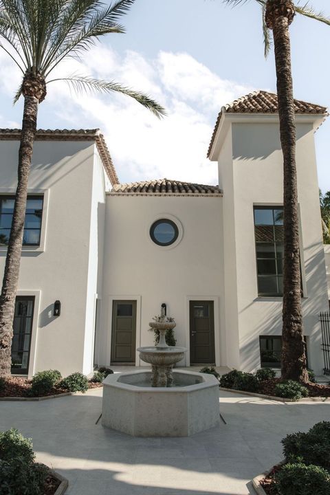 Recently built, the villa showcases outstanding craftsmanship and embraces a timeless Andalusian aesthetic with elegant architectural features. Covered porches provide shaded lounge areas ideal for relaxing under the Mediterranean sun, while expansive terraces invite alfresco dining and laid-back social gatherings. A sunken chill-out area with a custom-designed bar beside the private pool creates the perfect setting for unforgettable summer evenings.