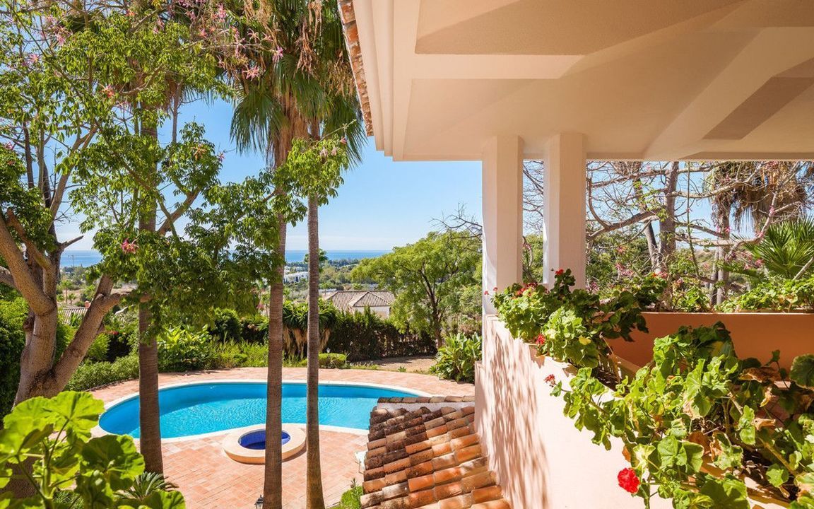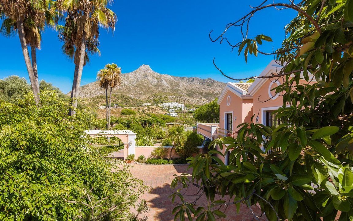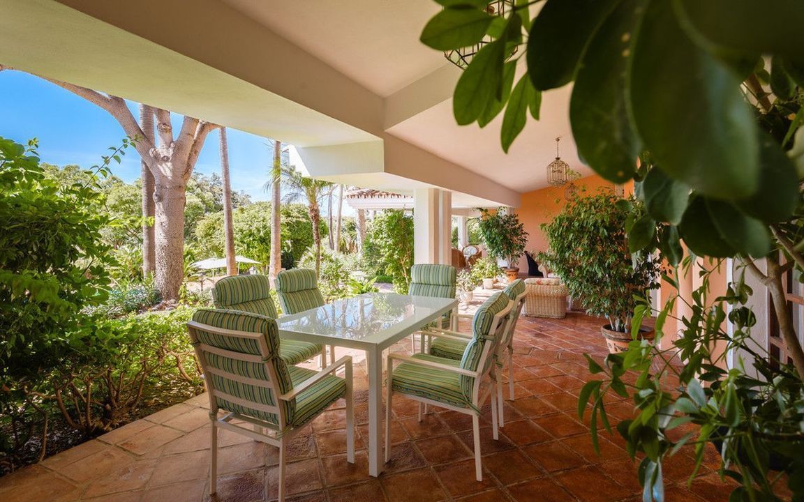 Omgeven door perfect aangelegde tuinen met volwassen beplanting, open gazons en schaduwrijke terrassen, straalt dit landgoed sereniteit en exclusiviteit uit, terwijl het slechts enkele minuten verwijderd is van de beste stranden, restaurants en het beroemde Puente Romano Resort van Marbella.
