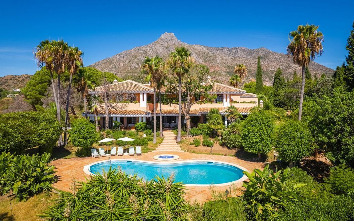 Gelegen in de prestigieuze enclave La Capellanía, in het hart van de Golden Mile van Marbella, bevindt zich dit magnifieke landgoed in mediterrane stijl op een uitgestrekt perceel van 7.505 m², met adembenemend uitzicht op zee, de majestueuze La Concha-berg en de volwassen tuinen van het eigendom zelf. Met een totale bebouwde oppervlakte van 1.811 m² combineert de residentie tijdloze Andalusische charme met royale proporties en verfijnde elegantie. Het beschikt in totaal over 20 slaapkamers, inclusief gasten- en personeelsverblijven.